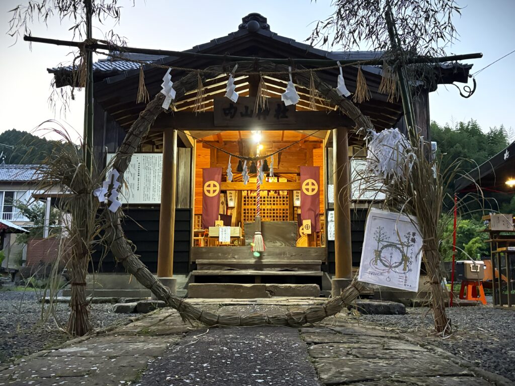 内山神社では大祓式(茅輪神事)として神事を行い茅の輪をくぐって、残り半年の健康を祈ります。